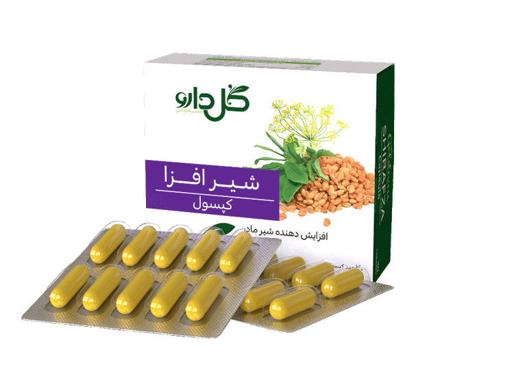 - کپسول شیرافزا، حاوی عصاره گیاهان رازیانه، زیره سبز، شنبلیله و شوید