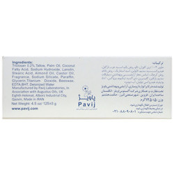 ترکیبات : حاوی 0.2 درصد تری کلوزان (ایرگازان)، روغن پالم، اسید چرب نارگیل، روغن بادام، اسید استئاریک، لانولین، دی اکسید تیتانیوم و بی.اچ.تی می باشد.