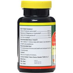 - ترکیبات: کلسیم کربنات، منیزیم هیدروکساید، ویتامین D3، زینک سولفات