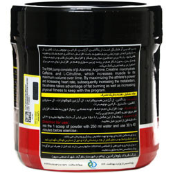 حاوی بتاآلانین، آرژنین، کراتین مونوهیدرات کافئین، ال سیترولین
