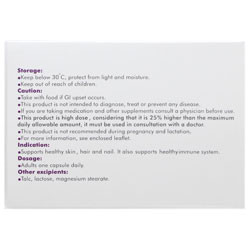 توجه: در صورت ایجاد ناراحتی گوارشی فرآورده را بعد از غذا میل نمایید. این فرآورده مکمل است و جهت تشخیص، درمان و پیشگیری نمی باشد. در صورت مصرف همزمان با سایر فرآورده ها یا داروهای دیگر قبل از مصرف با پزشک یا داروساز مشورت نمایید. این فرآورده با دوز بالا می باشد و با توجه به اینکه 25 درصد بالاتر از حداکثر مقدار مجاز روزانه است، می بایستی حتما با مشورت پزشک یا داروساز مصرف شود. فرآورده را بیش از مقدار توصیه شده مصرف نکنید، اگر مقدار مصرف در یک دوز بیش از 2 گرم باشد، باعث استفراغ خواهد شد. مصرف این فرآورده در دوران بارداری و شیردهی توصیه نمی شود. - تداخلات دارویی: مصرف همزمان این فرآورده با فلوروکینولون ها (سیپروفلوکساسین، لووفلوکساسین و ...) و تتراسایکلین ها باعث کاهش جذاب داروهای مذکور می شود. مصرف همزمان این فرآورده با پنی سیلامین، ترکیبات حاوی آهن و فسفر و برخی غذاها (سبوس، پروتئین، مواد معدنی) ممکن است باعث کاهش جذب زینک گردد. - عوارض جانبی: هر فرآورده به موازات اثرات درمانی مطلوب ممکن است باعث بروز برخی عوارض ناخواسته نیز شود. اگرچه همه این عوارض در یک فرد دیده نمی شود، در صورت بروز هریک از عوارض زیر با پزشک خود مشورت نمایید: درد شکم، سوء هاضمه، تهوع، استفراغ، اسهال، زخم های گوارشی - مسمومیت: در صورت مصرف اتفاقی بیش از مقادیر توصیه شده، بیمار را سریعا به مراکز درمانی منتقل نمایید.