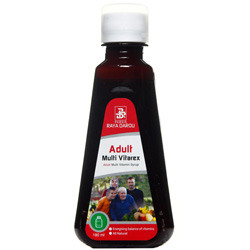 این شربت از ویتامین های مورد نیاز بدن که عبارتند از ویتامین c ، ویتامین B1 ، ویتامین B2 ، ویتامین B3 ، ویتامین B6 ، ویتامین B12 ، ویتامین A و ویتامین E و اسید فولیک ( B9 ) . ویتامین B1 : ویتامین B1 یا تیامین برای آزاد کردن انرژی از چربی ها ، پروتئین ها و کربوهیدرات ها مورد نیاز است. اعمال متابولیکی مختلفی را در سیستم اعصاب ، سلول های خونی و عضلات انجام می دهد . این ویتامین باعث حفظ سلامت گلبول های قرمز و همچنین خون رسانی بهتر به قلب و افزایش اکسیژن رسانی به آن می گردد. ویتامین B2 : برای عملکرد صحیح غده تیروئید و سوخت و ساز بدن دارای اهمیت فوق العاده زیادی می باشد. ویتامین B3 : این ویتامین در تنفس سلولی اهمیت دارد و در آزاد کردن انرژی از کربوهیدرات ها ، چربی ها و پروتئین ها دخالت دارد. بدن به نیاسین برای فعالیت ذهن و حافظه ، تولید آنزیم های گوارشی ،هضم و جذب مواد غذایی ، حفظ سلامت پوست نیاز دارد. ویتامین B6 : ویتامین B6 ویتامین خوش خلقی و مهربانی است. این ویتامین روی عملکرد مغز تاثیر می گذارد در واقع بیش ترین تاثیر این ویتامین روی ناقل های عصبی یعنی همان دوپامین و سرتونین است. ویتامین D3 : ویتامین D3 یا کلسیفرول از مهم ترین ویتامین های لازم برای بدن می باشد . بیشترین تاثیر این ویتامین بر روی استخوان ها می باشد و این کار با جذب بیشتر کلسیم و فسفر از روده انجام می دهد. ویتامین A : ویتامین های آ یا رتینول برای بهبود بینایی افراد در نور کم مثل شب و حفظ سلامتی سطح چشم ، دفاع از بدن و سلامتی پوست است. ویتامین آ نقشی حیاتی در فعالیت سالم قلب و عروق بدن داشته و در تنظیم سالم فشار خون لازم است. ویتامین E : این ویتامین در بدن نقش یک آنتی اکسیدان را ایفا می کند و از سلول های بدن در مقابل تخریب حفاظت می کند . همچنین این ویتامین دارای خاصیت ضد انعقادی می باشد که به جریان راحت خون در رگ هایی که دارای پلاکت های چربی چسبنده به دیواره هستند ، کمک می کند. ویتامین C : ویتامین C به بافت ها و استخوان های بدن برای رشد و ترمیم کمک می کند . این ویتامین خاصیت آنتی اکسیدانی دارد ، یعنی در جریان خون قرار گرفته و اثر شیمیایی موادی که به بافت های بدن آسیب می رسانند را خنثی می کند. اسید فولیک ( B9 ) : این ترکیبات برای همانند سازی ( تکثیر سلولی ) و ترمیم و متیلاسیون دی ان ای ضروریند . کمبود فولیک اسید موجب اختلال رشد ، کم خونی ماکروسیتیک ، اسهال ، نوروپاتی محیطی و نقائص لوله عصبی در جنین می شود.