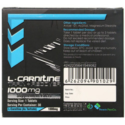 - به ازای هر قرص حاوی 1000 میلی گرم ال-کارنیتین به صورت ال-کارنیتین ال-تارترات