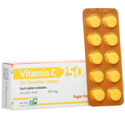 هر قرص حاوی آسکوربیک اسید 250 میلی گرم بدون شکر