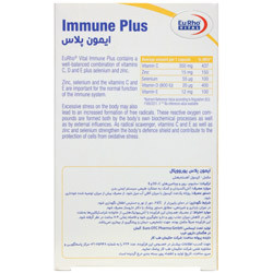 - ترکیبات Immune Plus (ایمون پلاس): ویتامین C، زینک، سلنیوم، ویتامین D و ویتامین E