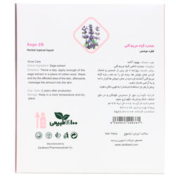 آکنه بیماری شایع پوستی است که اغلب بین نوجوانان و جوانان شایع بوده و شدت آن در افراد مختلف متفاوت است. تغییرات هورمونی در زمان بلوغ، زمینه ژنتیکی، رژیم غذایی نامناسب، عفونت، افزایش تولید چربی در پوست و مشکلات روانی از علل ایجاد کننده آکنه به شمار می روند. آثار ناشی از آکنه بر چهره، اغلب موجب مختل شدن فعالیت های اجتماعی افراد شده و در موارد شدید ممکن است به ایجاد اضطراب و افسردگی منجر شود. این فرآورده حاوی عصاره گیاه مریم گلی بوده که در بهبود آکنه بسیار موثر است. بیش از هزار سال است که از گیاه مریم گلی به عنوان یک گیاه دارویی ارزشمند استفاده می شود. ابوعلی سینا نیز در کتاب های خود به این گیاه اشاره کرده و خواص آن را برشمرده است. عصاره مریم گلی بر علیه باکتری اصلی ایجاد کننده آکنه اثرات آنتی باکتریال قوی داشته و از گسترش عفونت جلوگیری می نماید. همچنین مواد موثر موجود در عصاره گیاه مریم گلی به دلیل داشتن اثرات ضد التهابی و مهار فعالیت غدد چربی ساز پوست به بهبود سریع تر ضایعات آکنه کمک می نمایند. این عصاره از پیکر رویشی گیاه مریم گلی"Salvia officinalis" تهیه شده است که در مزارع شرکت دارویی زردبند کشت و فرآوری می گردد.