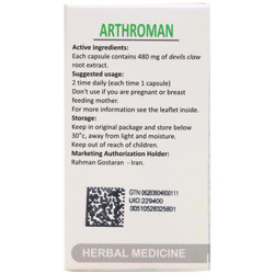 - آرترومان، حاوی 480 میلی گرم عصاره خشک گیاه پنجه شیطان به ازای هر کپسول
