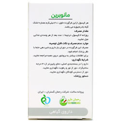 عوارض جانبی : هر دارو به موازات اثرات مطلوب درمانی ممکن است باعث بروز بعضی عوارض ناخواسته نیز گردد. اگرچه همه ی این عوارض در یک فرد دیده نمی شود اما در صورت بروز هر عارضه ای با پزشک مشورت کنید. عوارض احتمالی مصرف این دارو عبارتند از تهوع ، استفراغ ، درد شکمی ، سر گیجه و خس خس سینه . موارد عدم مصرف و نکات قابل توصیه : در صورت داشتن هرگونه بیماری خاص یا مصرف دارویی خاص ، قبل از استفاده از داروی گیاهی با پزشک خود مشورت کنید. در صورت وجود هر نوع حساسیت به عصاره و مواد دیگر موجود در فرمولاسیون مصرف نشود.