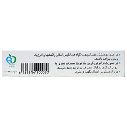 - عوارض جانبی: مصرف فراورده در دوزهای درمانی توصیه شده ایمن بوده و عارضه جانبی خاصی گزارش نشده است. اگرچه در صورت داشتن حساسیت به گیاه هاماملیس و یا دیگر اجزاء به کار رفته در فرمولاسیون امکان واکنش های آلرژِک وجود خواهد داشت. در این صورت از ادامه مصرف خودداری نمایید.