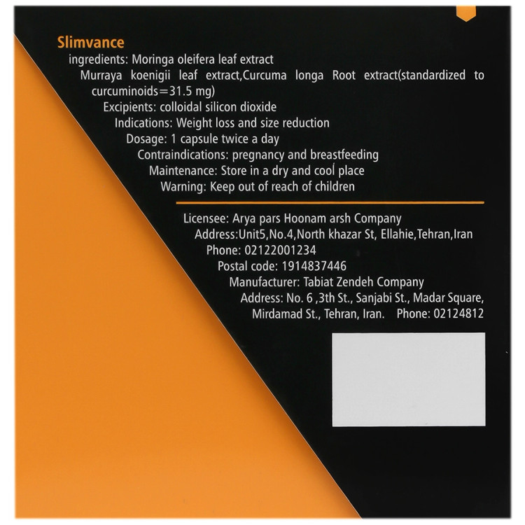 - کپسول لاغری اسلیم ونس قابل استفاده به همراه مکمل های کاهش اشتها و کاهش جذب چربی و کربوهیدرات