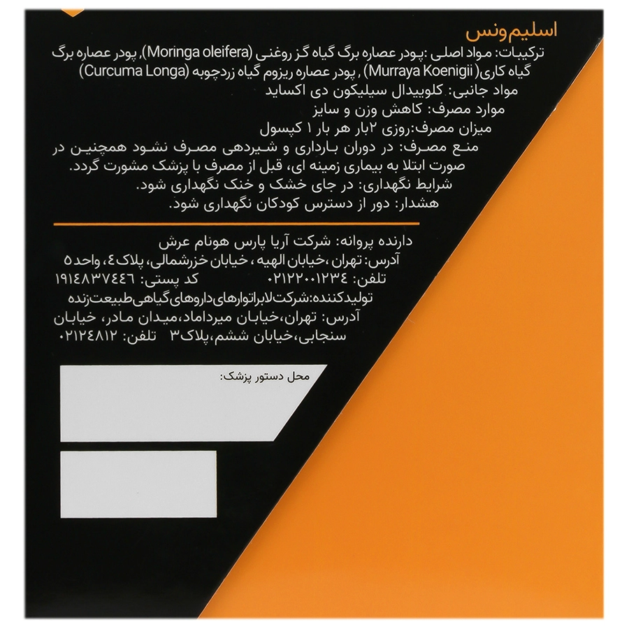 - کپسول لاغری اسلیم ونس قابل استفاده به همراه مکمل های کاهش اشتها و کاهش جذب چربی و کربوهیدرات