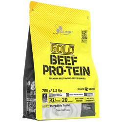 مکمل غذایی گلد بیف پروتئین، پروتئین غلیظ شده به شکل پودر همراه با شیرین کننده، یک ترکیب کامل از منابع آمینو اسید های مشتق شده از پروتئین های پلاسمای گوشت گاو با کیفیت بالا و پروتئین گوشت گاو هیدرولیز شده است. تحقیقات نشان داده که این پروتئین به رشد و نگهداری عضلات کمک میکند. این محصول برای بزرگسالانی که خواستار افزایش پروتئین هستند در نظر گرفته شده است و کسانی که مایل به افزایش حجم عضلات هستند به خصوص برای ورزشکاران و کسانی که از لحاظ فیزیکی فعال هستند.