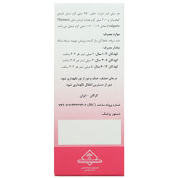 کودکان (3-1 سال): 2 میلی لیتر هر 6-4 ساعت کودکان (6-3 سال): 3 میلی لیتر هر 6-4 ساعت کودکان (12-6 سال): 5 میلی لیتر هر 6-4 ساعت