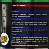 کربوهیدرات همراه با ال آرژنین حاوی 185 کالری، 45 گرم کربوهیدرات و 500 میلی گرم ال آرژنین حاوی 54 سروینگ