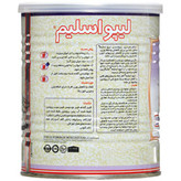 مکمل فیبری- پروتئینی لیپو اسلیم مکمل غذایی برای کاهش و حفظ وزن مطلوب بدن و کاهش چربیهای خون (کلسترول و تری گلیسیرید) می باشد. اگر می خواهید وزنتان را کم کنید و یا از افزایش وزن خود جلوگیری کنید تنها کافی است بخشی از یک یا دو وعده از غذای روزانه خود را با لیپو اسلیم جایگزین نمائید و به وزن ایده آل برسید. لیپو اسلیم خطر ابتلا، به بیماری های قلبی را کاهش می دهد و یک منبع غنی از پروتئین، ویتامینها می باشد. ترکیبات: فیبر گندم، فیبر جو دوسر، فیبر سیب، پروتئین غلیظ شده آب پنیر، پروتئین غلیظ شده شیر، نشاسته مقاوم، مجموعه ویتامینی، پکتین، اینولین، گوارگام، پسیلیوم، زانتان گام، آسپارتام، طعم دهنده های مجاز خوراکی.
