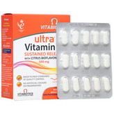 ویتامین سی اولترا یک مکمل غذایی با فرمولاسیون پیشرفته بوده که شامل 500 میلیگرم ویتامین C و 25 میلیگرم بیوفلاونوئیدهای مرکبات در هر قرص است. این مکمل از سیستم رهش کند (Slow Release) بهره میبرد که ویتامین C را به تدریج در بدن آزاد میکند و جذب یکنواخت و مستمر آن را تضمین میکند. ویتامین سی اولترا فاقد گلوتن، لاکتوز، نمک و رنگ مصنوعی بوده و برای مصرف گیاهخواران نیز مناسب است.