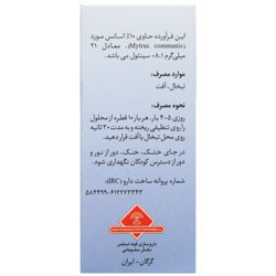 محلول موضعی تبخال و آفت حاوی 10% اسانس گیاه مورد با نام علمی (Myrtus Communis)، معادل 21 میلی گرم 1، 8-سینئول استاندارد شده است.