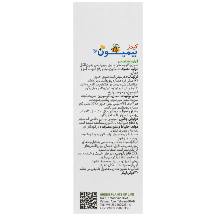 - کیدز بیمیون، اسپری دهانی حاوی عصاره پروپولیس و عسل ارگانیک