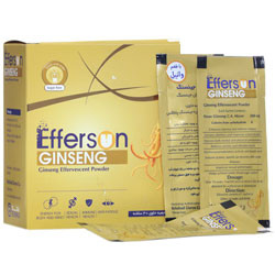 پودر جوشان افرسان جینسنگ یک فرآورده گیاهی است که حاوی عصاره استاندارد شده ریشه گیاه جینسنگ کره ای یا پاناکس است. ریشه این گیاه منبع غنی از ساپونین های تری ترپنی به نام جینسنوزاید با خواص درمانی متعدد می باشد. مکانیسم عمل جینسنوزاید ها، افزایش فعالیت سلول های بدن و بهبود جریان خون است. از این گیاه به عنوان عاملی نیروبخش برای تقویت قوای جسمانی و ذهنی، افزایش توانایی بدن برای مقابله با استرس های جسمی استفاده می شود.
