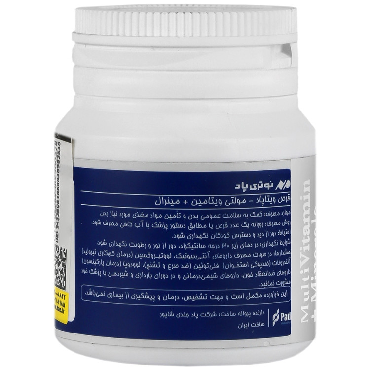 - قرص مولتی ویتامین نوتری پاد، حاوی ترکیب متنوعی از ویتامینها و مواد معدنی