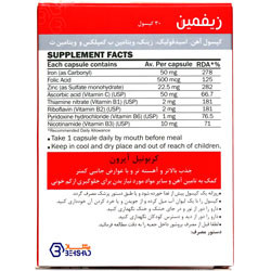 - کپسول زیفمین علاوه بر آهن حاوی ویتامین های B1 ،B2 ،B3 ،B6 ،B9 و زینک می باشد.