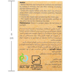 در صورت هرگونه تغییر رنگ، ترک، چسبندگی بر روی سرشیشه از ادامه مصرف آن خودداری و در صورت لزوم تعویض نمایید. سایز سر شیشه را متناسب با سن کودک انتخاب کنید. از سر شیشه نباید به عنوان پستانک یا آرام کننده کودک و یا وسیله ای برای گول زدن کودک استفاده شود.