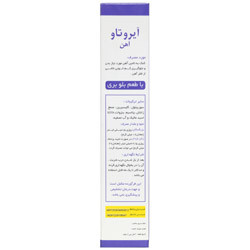 عوارض جانبی: یبوست، ناراحتی معده، شکم درد، تهوع و استفراغ، تغییر رنگ دندان، تغییر رنگ مدفوع - توصیه ها: مسمومیت اتفاقی با آهن از شایع ترین دلایل مسمویت های کشنده در اطفال است. در صورت مصرف بیش از حد این فرآورده توسط اطفال فورا به اورژانس مراجعه کنید. کودکان زیر 12 سال و زنان باردار و شیرده قبل از مصرف این فرآورده با پزشک خود مشورت نمایند. در صورتی که از هر فرآورده حاوی آهن دیگری مانند انواع مکمل های غذایی دوران بارداری استفاده می نمایید، قبل از مصرف این فرآورده درباره احتمال مصرف بیش از حد آهن با پزشک یا داروساز خود مشورت کنید. در صورت نگرانی بابت رنگی شدن دندان می توانید این فرآورده را با آب رقیق کرده و با نی مصرف نمایید. جهت بهبود جذب، دو ساعت قبل یا بعد از مصرف فرآورده های حاوی کلسیم، آنتی اسیدها و لبنیات مصرف شود. در مبتلایان به هموکروماتوسیس، تالاسمی، هموگلوبینوپاتی، پورفیریا، بیماری های التهابی روده و زخم های فعال گوارشی مصرف نشود. جهت جذب بهتر، این فرآورده را با معده خالی مصرف کنید. در موارد کم خونی ناشی از عواملی به غیر از فقر آهن با مشورت پزشک استفاده شود. به غیر از دستور پزشک، بیش از 6 ماه به طور مداوم مصرف نگردد. در صورت رخ دادن عوارض گوارشی ابتدا از مقادیر پایین تر فرآورده استفاده نموده و بعد به تدریج میزان مصرف را به حد مورد نظر برسانید و یا بعد از غذا مصرف نمایید. - تداخلات دارویی: فرآورده های حاوی آهن با آنتی اسیدها، تتراسایکلین ها، فلوروکینولون ها (مانند سیپروفلوکساسین و لووفلوکساسین)، لووتیروکسین، مایکوفنولات، فرآورده های حاوی روی، آلندرونات، لوودوپا، متیل دوپا، پنی سیلامین، دیمرکاپرول و کلرامفنیکل تداخل دارند.