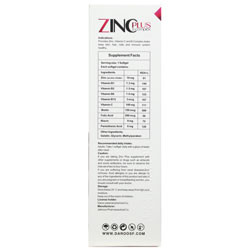 زینک یکی از مواد معدنی مورد نیاز برای بدن است که در تقویت سیستم ایمنی، ترمیم زخم ها و سوختگی ها، تقویت رشد جسمی و ذهنی در سنین رشد، حفظ سلامت پوست و مو، استحکام ناخن ها و بسیاری موارد دیگر نقش دارد. ویتامین های خانواده ی B گروهی از ویتامین ها هستند که در بسیاری از واکنش های بدن نقش ضروری دارند و سبب بهبود متابولیسم بدن می شوند. همچنین این گروه از ویتامینها اهمیت بالایی در حفظ سلامت پوست و مو ناخن دارند. ویتامین C یکی از ویتامین های محلول در آب با خاصیت آنتی اکسیدانی است. ویتامین C باعث افزایش جذب روی و آهن نیز می شود. محصول زینک پلاس دارای 10 میلی گرم زینک و خانواده ی ویتامین B و ویتامین C است. پیشنهاد می شود روزانه یک عدد پس از غذا به همراه یک لیوان آب میل شود.