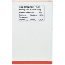 هر قرص حاوی 500 میلی گرم کلسیم (به صورت کربنات)، 200 واحد ویتامین D3
