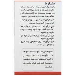 این فرآورده را در دمای زیر 30 درجه سانتی گراد، دور از نور و رطوبت نگهداری نمایید. این فرآورده را دور از دسترس کودکان نگهداری نمایید.
