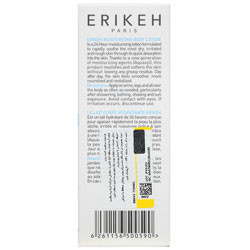 لوسیون مرطوب کننده بدن اریکه یک مرطوب کننده با قابلیت آبرسانی فوق العاده و دوام اثر طولانی است. لوسیون مرطوب کننده بدن اریکه حاوی نسل جدید ترکیبات مرطوب کننده (Aquaxyl) و حاوی عصاره گیاه آلوئه ورا به عنوان مرطوب کننده و بازسازی کننده قوی عمل کرده و همچنین با قدرت جذب سریع و کامل، لطافت و شادابی را به پوست شما هدیه می کند. این محصول تحت لیسانس شرکت اریکه فرانسه توسط شرکت آریا شیک منطقه آزاد قشم به سفارش شرکت آریا زیبا سلامت در ایران تولید شده است.