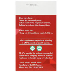 میزان توصیه شده برای افراد بالای 18 سال و بزرگسال روزانه 2 مرتبه، هربار یک کپسول با نصف لیوان آب، یک ساعت قبل از غذا یا 2 ساعت پس از وعده غذایی می باشد. (کپسول را کاملا ببلعید.)