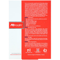 - فرودین حاوی آهن بیس گلیسینات، ویتامین C، B9 و B12