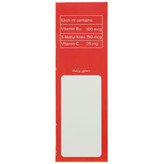 مکمل تغذیه ای حاوی فولات، ویتامین B12 و ویتامین سی حاوی سیتریک اسید، سدیم بنزوات، رنگ، سوربیتول، گلیسیرین، طعم دهنده حاوی طعم مطلوب میوه برای مصرف در نوزادان و کودکان