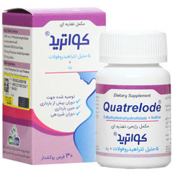 راهنمایی عمومی: کمبود فولات یکی از شایع ترین کمبود های ویتامین است که برای حفظ عملکرد سلولی و سلامت بدن ضروری است و خوردن غذاهای غنی از فولات ممکن است دوز توصیه شده روزانه شما را تامین ننماید. عنصر ید در رشد و تکامل جنین نقش اساسی دارد. - مکانیسم اثر: کواترید حاوی 5- متیل تترا هیدروفولات (5-MTHF) با ملح گلوکوزامین است، که فرم فعال فولات می باشد. فولات موجود در رژیم غذایی و اسید فولیک سنتتیک از لحاظ بیولوژیکی فعال نیستند. این ترکیبات باید طی پروسه چند مرحله ای به 5- متیل تترا هیدروفولات (5-MTHF) تبدیل گردند که این فرآیند مستلزم وجود آنزیم متیلن تترا هیدروفولات ردوکتاز (MTHFR) می باشد. افراد مبتلا به پلی مورفیسم این آنزیم، قادر به تامین مقدار کافی و مورد نیاز فولات فعال بیولوژیکی نمی باشند. کواترید بدون نیاز به این آنزیم به طور مستقیم تبدیل به فرم فعال فولات شده و نیاز تغذیه ای شما را تامین می نماید. قرص کواترید ترکیب منحصر به فرد از یدید پتاسیم و کواترفولیک می باشد.