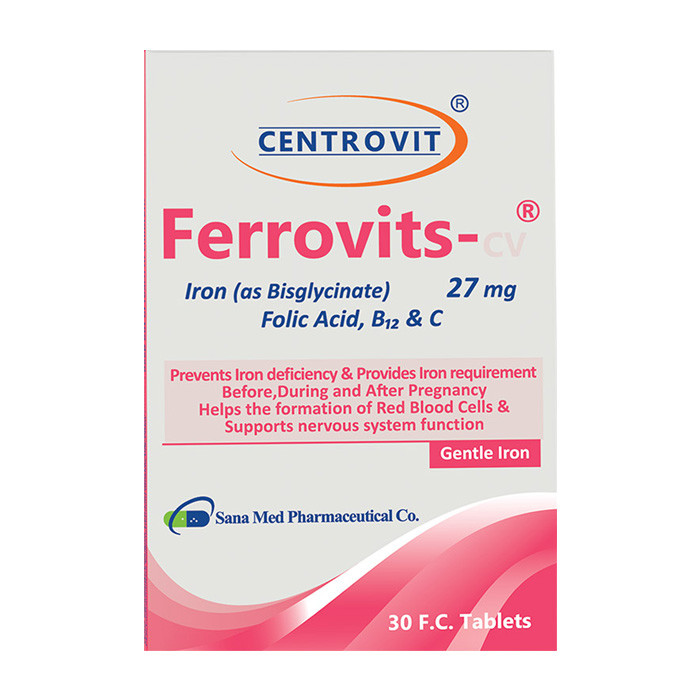 هر قرص سنتروویت فروویتس-سی وی حاوی: - 18 میلی گرم آهن المنتال (به صورت فروس بیس گلیسینات) - 500 میکروگرم فولیک اسید - 1.8 میکروگرم ویتامین ب12 - 60 میلی گرم ویتامین ث