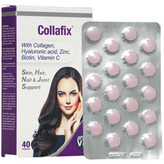 کلاژن فواید زیادی از جمله تسکین دردهای ناشی از آرتروز (استئو آرتریت)، بهبود سلامت پوست و پیشگیری از تحلیل استخوان ها دارد. هیالورونیک اسید عمدتا در سلول های بافت همبند و به خصوص در پوست ساخته می شود و قوی ترین ماده جذب کننده رطوبت و مغذی برای پوست می باشد. روی یک آنتی اکسیدان است که به تقویت سیستم ایمنی کمک می کند. ویتامین B5 (بیوتین) یکی از ایمن ترین و موثر ترین مواد مغذی است. مزایای ویتامین C شامل محافظت در برابر نقص سیستم ایمنی بدن و جلوگیری از چروک شدن پوست می شود. ویتامین C در عملکرد طبیعی سیستم عصبی، تولید انرژی مورد نیاز برای عملکرد مناسب سلولی و حفظ سلامت مو، پوست و غشاهای مخاطی نقش دارد. این محصول تحت لیسانس شرکت Welfare Nutrition کشور بلژیک، در کارخانه هگمتان داروی غرب تولید شده است و شرکت سمر طب درمان دارنده پروانه ساخت این محصول می باشد.