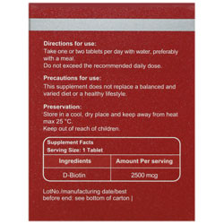 حاوی 2500 میکروگرم بیوتین در هر قرص