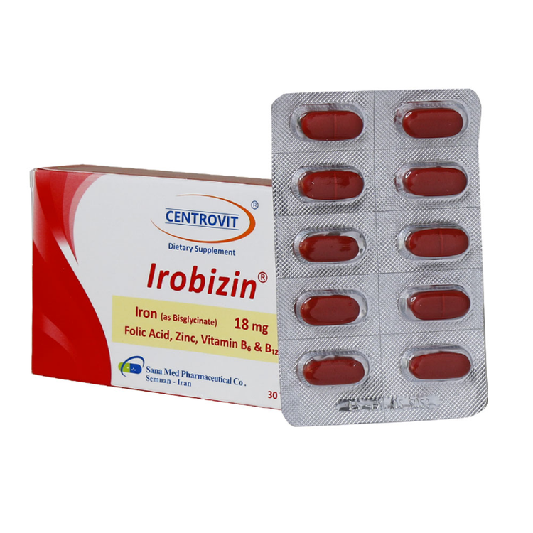 هر قرص روکش دار آیروبیزین حاوی 18 میلی گرم آهن، 400 میکروگرم فولیک اسید، 11 میلی گرم زینک، 1/3 میلی گرم ویتامین ب6 و 2/4 میکروگرم ویتامین ب12 می باشد.
