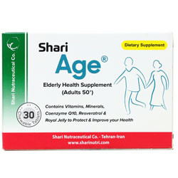 - ایج شاری، حاوی ویتامین ها، مواد معدنی، کوآنزیمQ10، رزوراترول و رویال ژلی