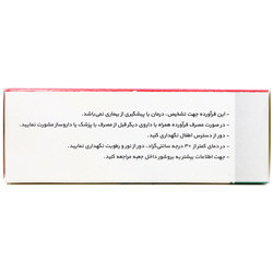 در دمای کمتر از 30 درجه سانتیگراد ، دور از نور و رطوبت نگهداری شود. تا زمان مصرف فرآورده را درون جعبه نگهداری شود. دور از دسترس کودکان نگهداری شود.