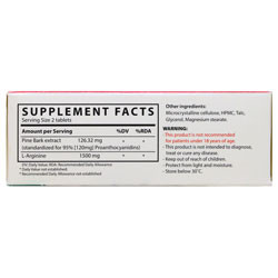 | (Pine Bark extract (Standardized for 95% (120 mg) Proanthocyanidins | (Pine Bark extract (Standardized for 95% (120 mg) Proanthocyanidins | 126.32 mg | ** |