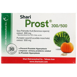 هر قرص روکش دار شاری پروست ، حاوی 300 میلی گرم عصاره میوه ساوپالمتو ( نخل اره ای ) با نام علمی Serenoa Repens استاندارد شده بر اساس وجود 25% اسیدهای چرب و 500 میلی گرم عصاره دانه کدو (نسبت 10:1) با نام علمی Cucurbita Moschata می باشد. اثرات فارمارکولوژیک و مکانیسم اثر : قسمت مورد استفاده گیاه ساوپالمتو ، میوه آن است که عصاره آن دارای خواص ضد التهابی و آنتی آندروژنیک می باشد . اثر آنتی آندروژنیک این عصاره مربوط به آنزیم 5- آلفا ردوکتاز است که مانع از تبدیل تستوسترون به دی هیدروتستوسترون می شود. همچنین عصاره این گیاه از طریق مهار آنزیم سیکلواکسیژناز باعث کاهش تکثیر سلول های پروستات و جلوگیری از بزرگ شدن این غده می شود. عصاره دانه کدو نیز دارای آنزیم آسیل - کوآنزیم A اکسیداز می باشد که باعث مهار اکسیداسیون اسیدهای چرب می شود.