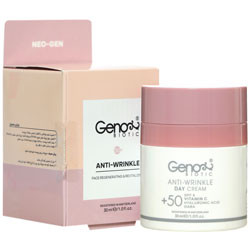 کرم ضد چروک روز مناسب 50+ سال ژنوبایوتیک این کرم دارای یک ترکیب قدرتمند و جدید به نام آمینوبوتریک اسید (گابا) برای رفع چین و چروک افراد بالای 50 سال می باشد که خاصیت شبه بوتاکسی داشته و با کاهش استرس و انقباض موجود در عضلات صورت، آنها را از حرکت اضافی که منجر به آشکار شدن و یا به وجود آمدن چین و چروک می شود، باز می دارد. در نتیجه از انقباض عضله جلوگیری می شود و در این حالت پوست صورت صاف تر و جوان تر به نظر می رسد. این کرم همچنین حاوی هیالورونیک اسید است که علاوه بر آبرسانی، باعث حفظ رطوبت و افزایش خاصیت الاستیسیته در پوست صورت در طول روز می شود. ویتامین C دیگر ترکیب موجود در این کرم است که از یک طرف سبب افزایش کلاژن سازی در پوست می شود و از طرف دیگر، نقش روشن کننده برای پوست دارد.