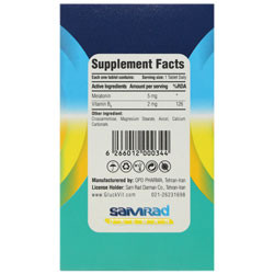 - حاوی 5 میلی گرم ملاتونین و 5 میلی گرم ویتامین ب6 در هر قرص