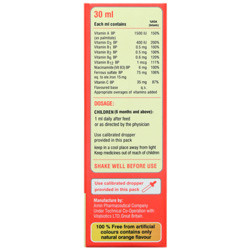 این محصول جهت پیشگیری از کمبود ویتامین ها و آهن مورد نیاز روزانه جهت کمک به سلامت عمومی و حفظ رشد نرمال در نوزادان و کودکان می باشد و همچنین دارای اسانس طبیعی پرتقال بوده که باعث پذیرش بالای محصول از سوی اطفال می گردد.