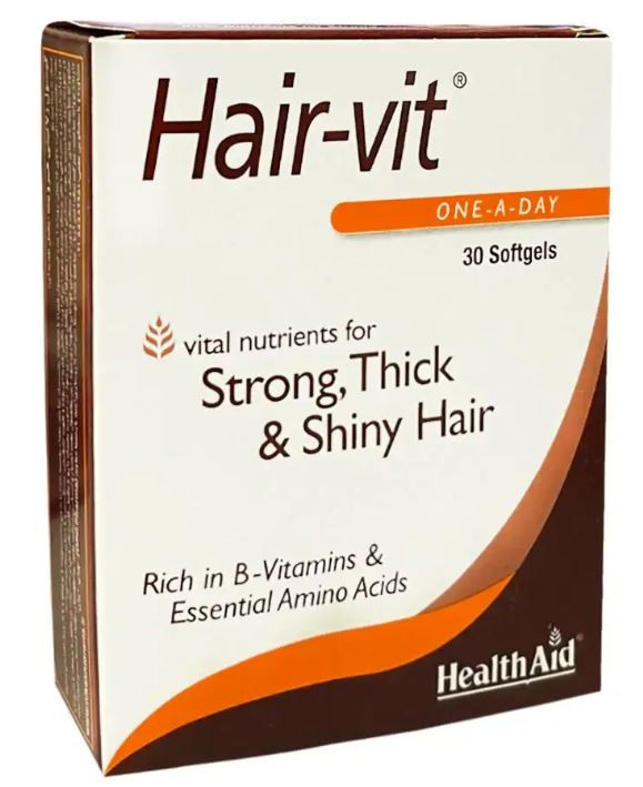 کپسول hair vit کمپانی Health Aid حاوی مجموعه ای از ویتامین های گروه B و اسیدهای آمینه ضروری می باشد. مصرف قرص ریزش مو هیرویت باعث جلوگیری از ریزش مو، بهبود بافت و افزایش ضخامت مو شده و همچنین سبب بهبود رنگ و درخشندگی مو نیز می شود و در تأمین سلامت مو بسیار مؤثر عمل می کند.