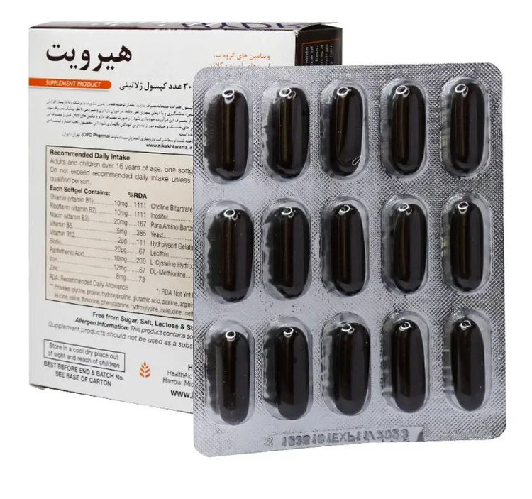 - قرص هیرویت منبع غنی از ویتامین های گروه B و اسیدهای آمینه و کلاژن