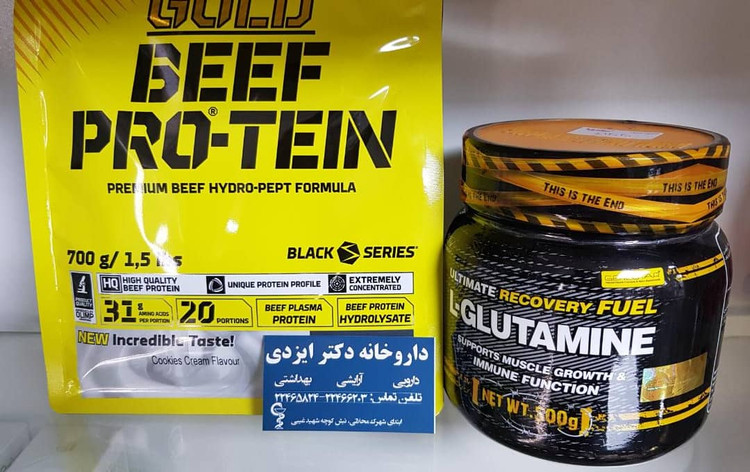 پکیج گلد بیف پروتئین الیمپ به همراه گلوتامین 500 گرمی ژن استار
