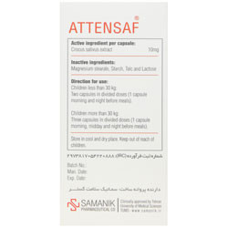 - Attensaf حاوی 10 میلی گرم عصاره خشک زعفران در هر کپسول